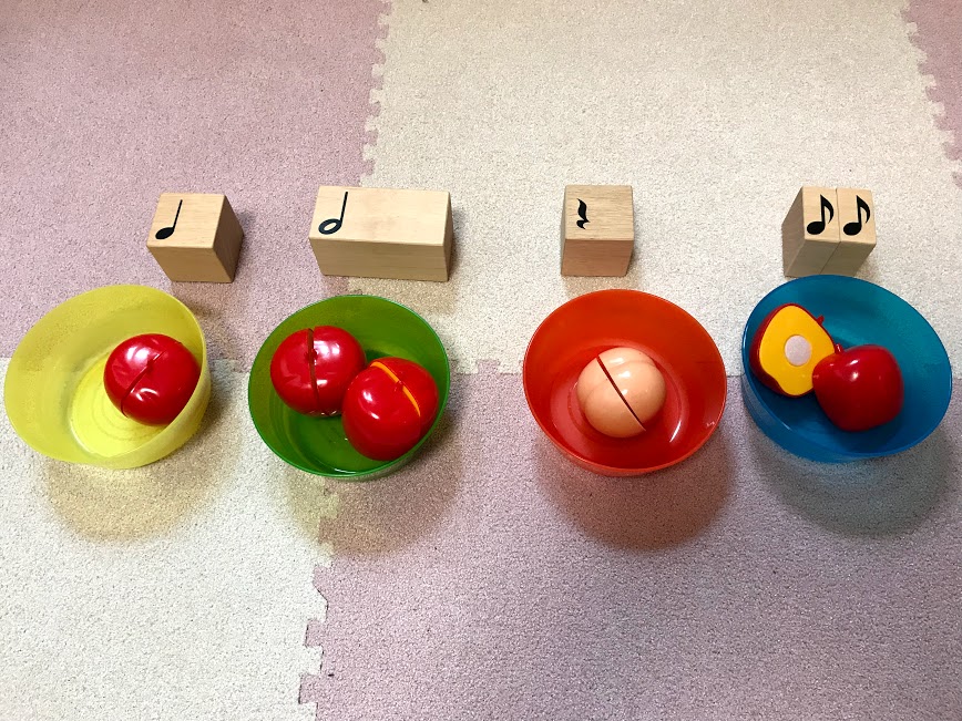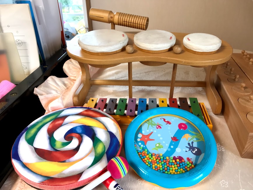 ピアノを習うにはまだ早そうだけれど、音楽が好きそう、ピアノに興味がありそう。そんな小さなお子さんにも音楽を楽しんでもらいたくてプレピアノのレッスンを開講しました。リトミックというと集団で大きな広い会場で走ったり止まったりと「動」の動きがメインのレッスンを想像される方が多いと思いますが、アキピアノ教室の会場は小さなレッスン室です。小さなお部屋なので動きは安全に配慮しつつ工夫をしながら、その分ピアノが近いので音をより近くで感じられ、グランドピアノや様々な楽器に触れ、シールや折り紙で指先を使い、動いてビートを感じてリズムを養うなど、ピアノ教室ならではのピアノにスムーズに移行できることを意識して、個人レッスンなのでそれぞれのお子さんの興味ある部分をのばすプログラムを作っています。